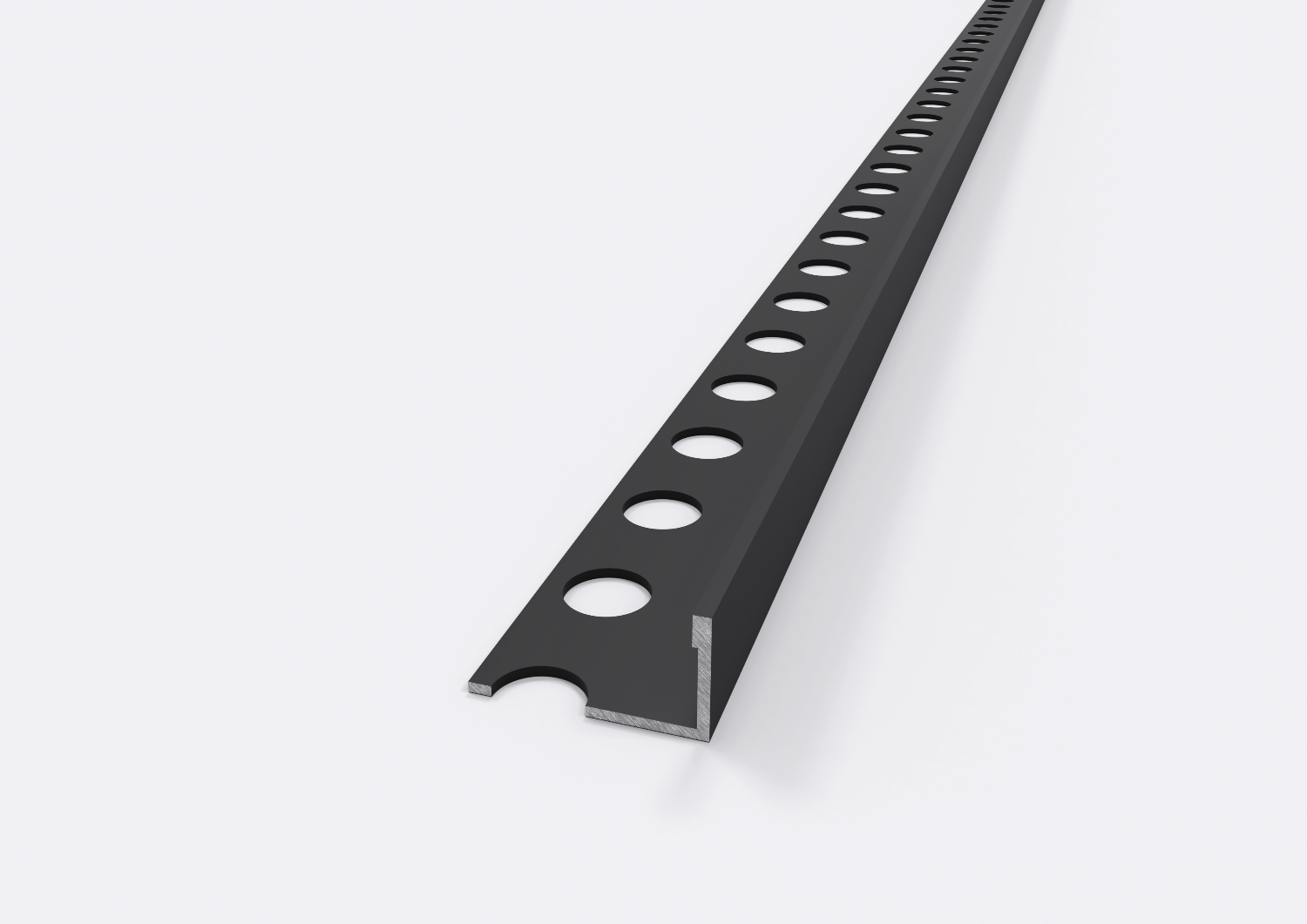 Il profilo terminale in alluminio nero opaco è progettato per rifinire con precisione i bordi di nicchie e rientranze, offrendo una soluzione estetica pulita e funzionale. La sua forma arrotondata e sottile si integra con discrezione nel rivestimento, contribuendo a un risultato elegante e continuo. Realizzato in alluminio leggero e resistente, è ideale per ambienti come bagni e cucine, grazie alla sua buona resistenza all’umidità e alla facilità di posa.