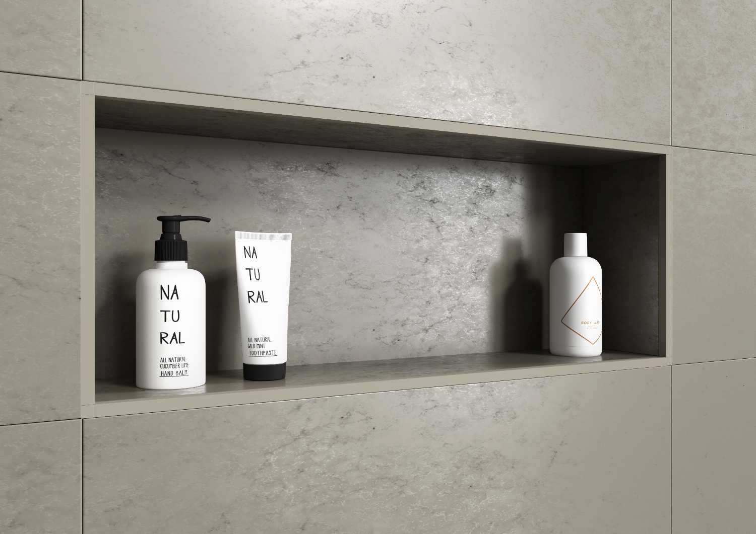 Pensato per rifinire con precisione le nicchie rivestite, questo profilo terminale in alluminio con finitura sabbia effetto pietra valorizza il bordo con un risultato pulito e armonioso. La superficie materica dialoga con rivestimenti dall’estetica naturale, contribuendo a definire dettagli ordinati e contemporanei. Ideale per chi cerca una chiusura tecnica discreta ma visivamente coerente con il progetto.